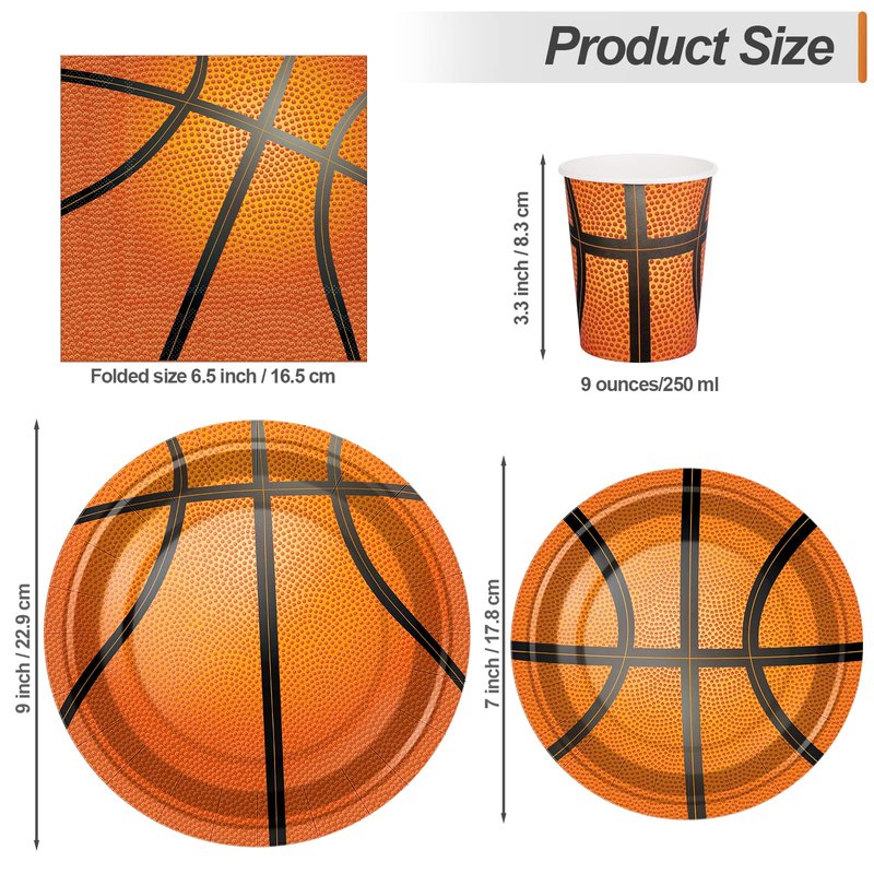 - Basketball theme: featuring the theme of basketball, our party supplies are printed with the pattern of basketball, which is very vivid and in line with the theme of basketball party; you can use these party supplies to decorate the dinner table of your party
