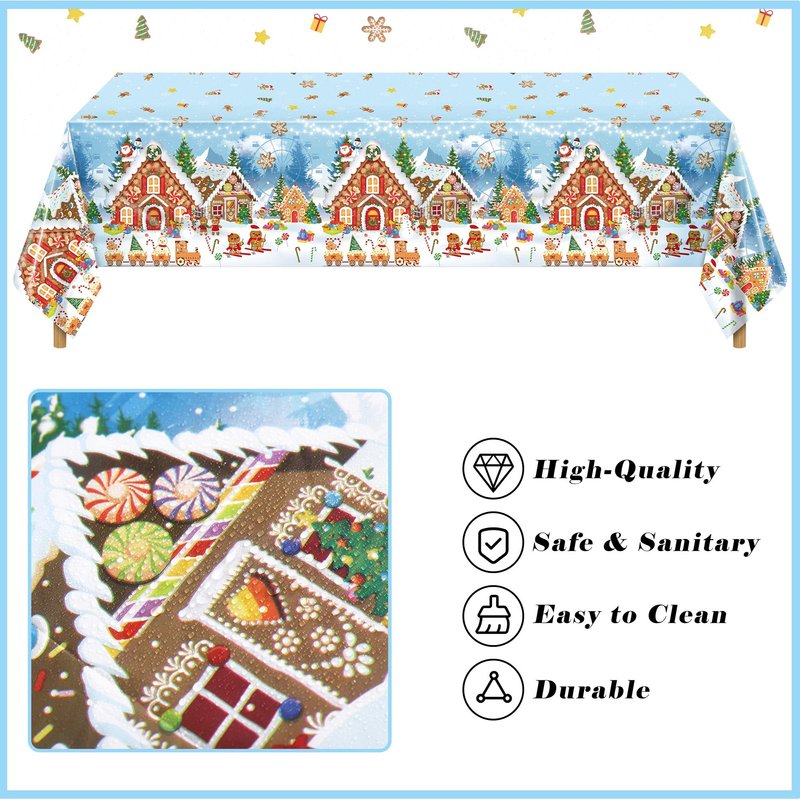 - High-Quality Material: Our Christmas gingerbread table covers are made from premium PVC material, which is soft, safe, waterproof, and reusable. They can be used for various events or offering convenience to your daily life. The exquisite patterns and fade-resistant colors will allow you to bid farewell to the hassle of dealing with spills and washing up after your gingerbread party.