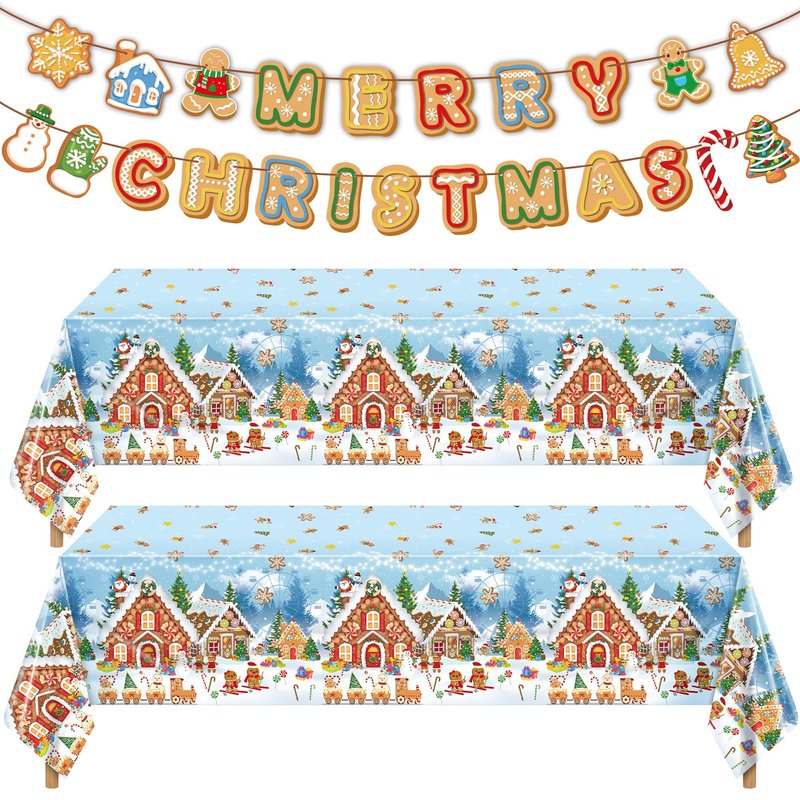 - Easy to Clean: Our plastic gingerbread table covers are stain and oil resistant, protecting your dining table from food and drink spills, making your post-party clean-up quick and easy. After your event, simply roll up the tablecloth and dispose of it. Each banner flag is pre-punched for effortless hanging and decoration.
