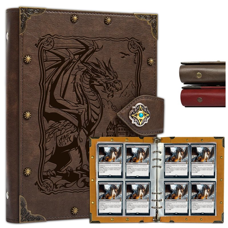 - Unique Design:Rivets with vintage faux leather complete the overall look.using embossed pattern design brings true touch,Not just printed.with metal rivets bounded around the entire cover (front and back),there are 8 pcs metal book corners covered which can protect the Card Binder better.A great collectors accessory to increase any card enthusiast experience with immersive hints by the look.
