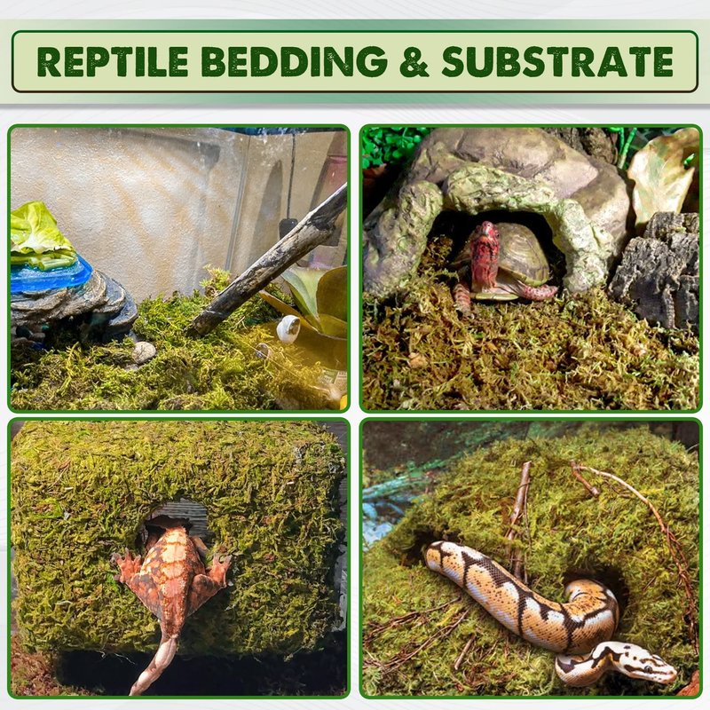 SAFE AND HUMIDITY MOSS FOR REPTILES: DUSPRO Natural moss says no to artificial dyes and completely keep to the natural green color of real moss. That provide your reptiles feel comfortable to sleep, craw, breed, hide & hibernation