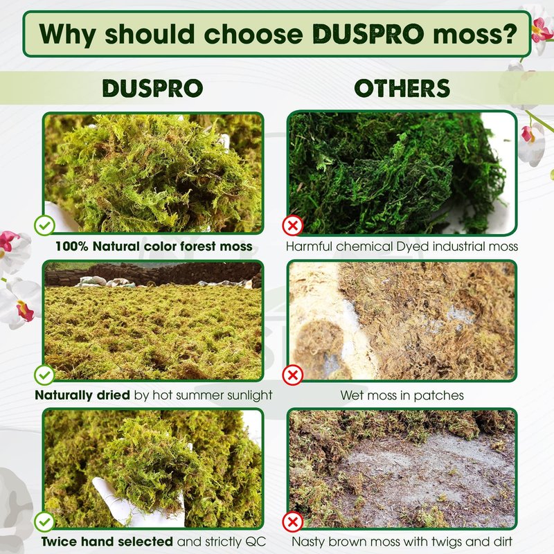 PREMIUM HAND-PICKED MOSS: Different from other sphagnum moss or spanish moss in the market, our long fibered real moss are carefully selected and classified by hand and naturally dried by hot summer sunlight that helps to remain all the nutrients.
