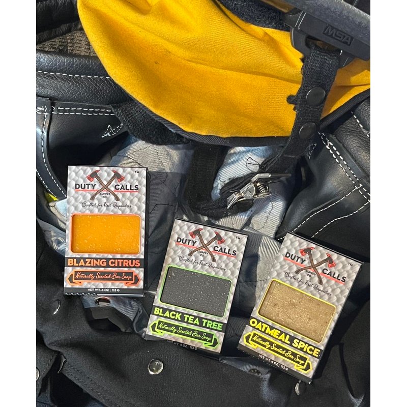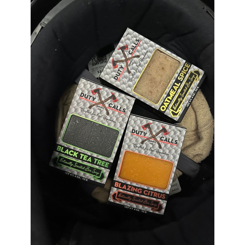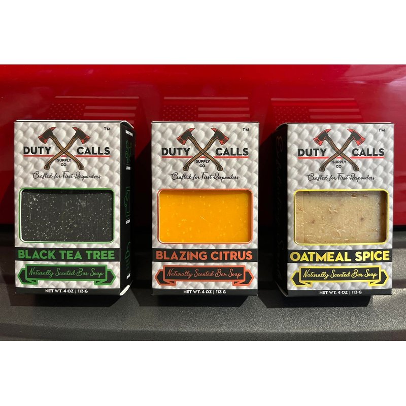 Duty Calls Supply Co. All Natural Firefighter Bar Soap, 3 Bar Variety Pack-Black Tea Tree, Blazing Citrus and Oatmeal Spice