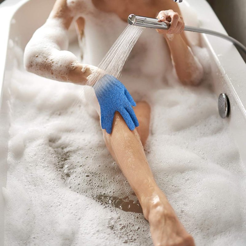 - Warm notice: Duufin bath gloves are designed for exfoliating, the wash gloves material is a bit of rough in order to achieve the better exfoliating effect. Rubbing gently with your hands and rinsing by water, drying the gloves but do not insolate under the sun