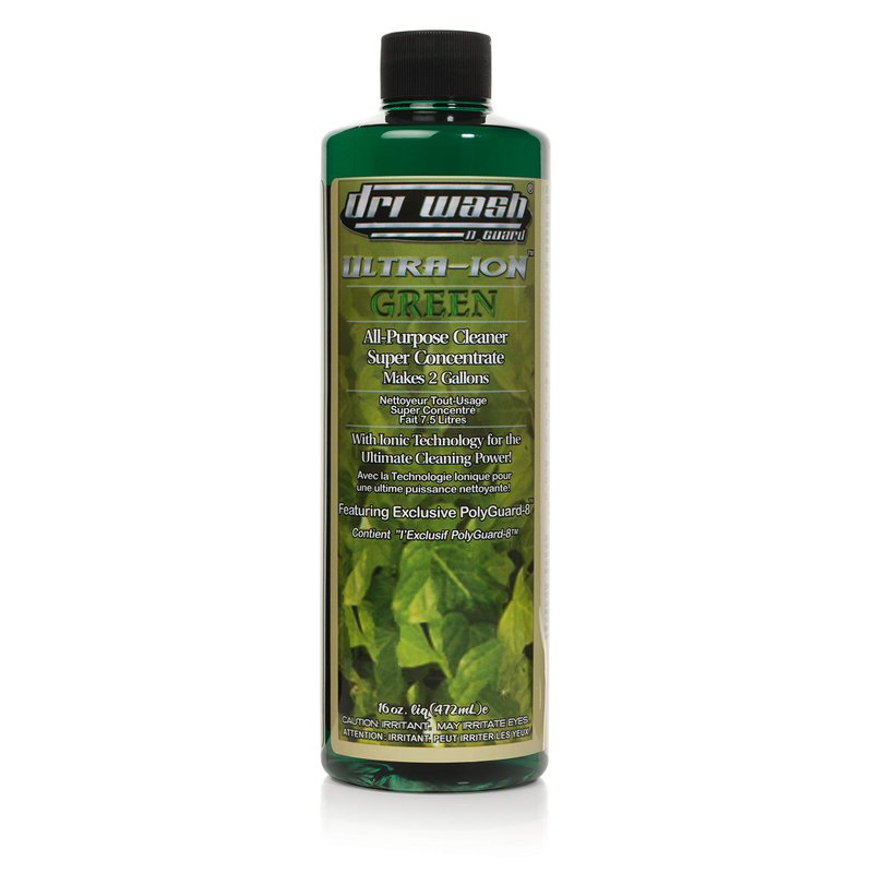 If you can put water on it, ULTRA-ION GREEN will safely clean it. One 16 ounce bottle of ULTRA-ION GREEN Super Concentrate featuring exclusive PolyGuard-8 will make up to two gallons of liquid cleaner, making it the most cost effective cleaning product in its class. ULTRA-ION GREEN is a biodegradable liquid containing no toxic solvents or bleaches, which provides a safer solution to your general cleaning needs. No scrubbing or rinsing is required, simply spray on and wipe off. ULTRA-ION GREEN will effectively clean: Appliances, Floors, Fabric, Marble, Grout, Laundry Stains, Sinks, Grease, Juice Stains, Pots & Pans, Dishes, Microwave Ovens, Carpet, Tile, Coffee Stains, Cabinets, Counters, Stove Tops, Pet Stains, Walls, Concrete And so much more…