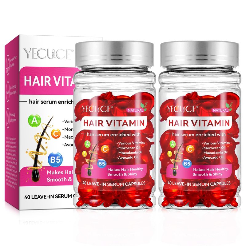 DXFFJKVG Hair Treatment Serum - Hair Vitamin Serum Capsule - Hair Styling Serum with Vitamins A C E Pro B5 - No Rinse with Moroccan, Macadamia & Avocado Oil for Women & Men - 40 Capsules(2 Pack), Red
