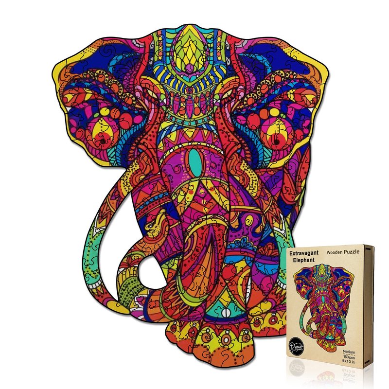 Dymier Green Wooden Puzzle for Adults - Unique Puzzle, Wood Cut Animal Shaped Puzzles 150 Pieces Medium Size Extravagant Elephant - Great Gift for Family and Friends, 8 by 10 inch