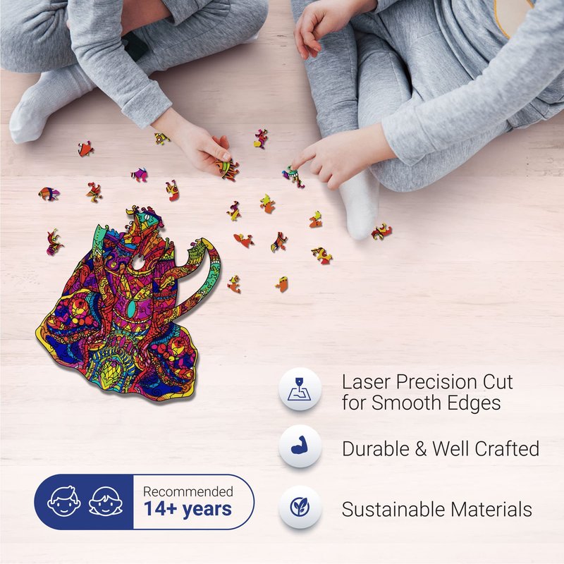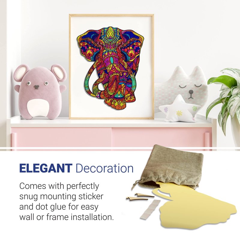 - A MUST-HAVE ITEM FOR HOME or OFFICE - Our puzzle is made with excellent craftmanship and great design so you can proudly display it anywhere in your home. It comes with a cloth bag for storage and a STICKER in a ELEPHANT SHAPED CUT to stick on so you can frame it easily.
