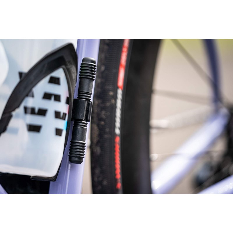 LOOKING FOR THE "ULTRALITEST" TUBELESS TIRE PLUGGER IN THE WORLD? Dynaplug holds the prize! Without a doubt, this Carbon Racer tool is the optimal onboard choice for tubeless bike riders who crave everything featherweight and beyond. ONLY 14 grams (less than one half ounce) packages the fastest tool to plug pesky punctures that evade sealant. We pulled out all the stops with this one to beat the scale but being lite doesn’t mean it’s not tough! This tool molded of Nylon 6 plus 30% glass fill fibers which creates it's Carbon black matte surface. All Dynaplug Racer tools come with Dynaplug repair plugs, Soft Tip and Mega, with one stowed at each end ready to use. Snap on caps allow it to be deployed quickly and keep the plugs clean. Another special feature is the complimentary Carbon Silicone holder that neatly installs under the bottle cage to make the Racer easily accessible. The silicone holder weighs in at 10 grams; if that tips the scale too much leave it behind or give it to your buddy. Limited Lifetime Warranty