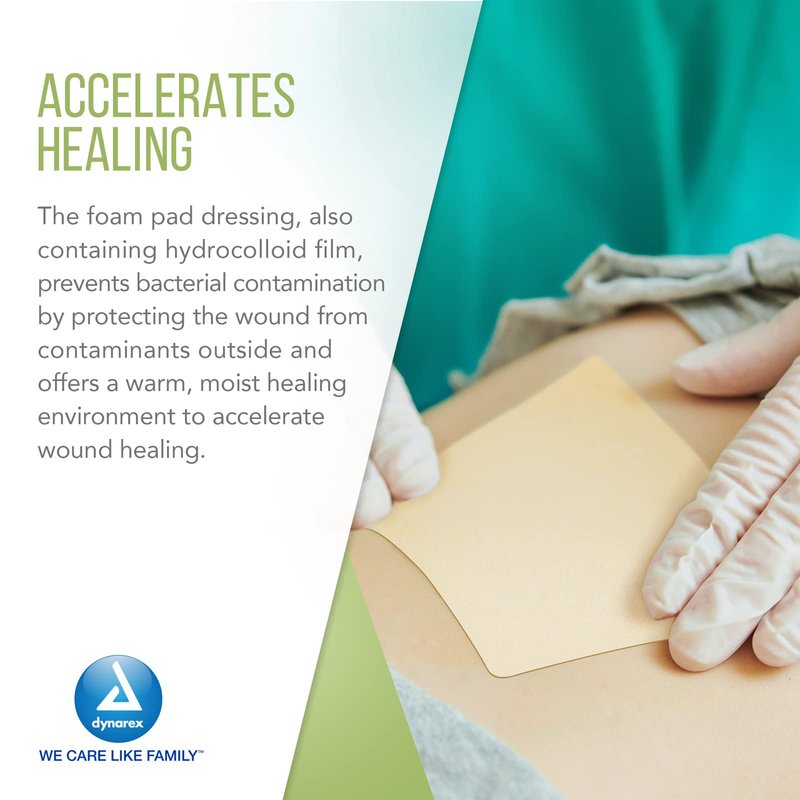 - ACCELERATES HEALING: The foam pad dressing, also containing hydrocolloid film, prevents bacterial contamination by protecting the wound from contaminants outside and offers a warm, moist healing environment to accelerate wound healing.