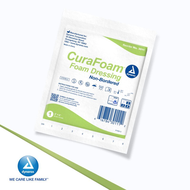Dynarex 3011 CuraFoam Foam Dressing, Non-Bordered, Sterile, Provides Cushioned and Moist Wound Care, 2" x 2", Pack of 10