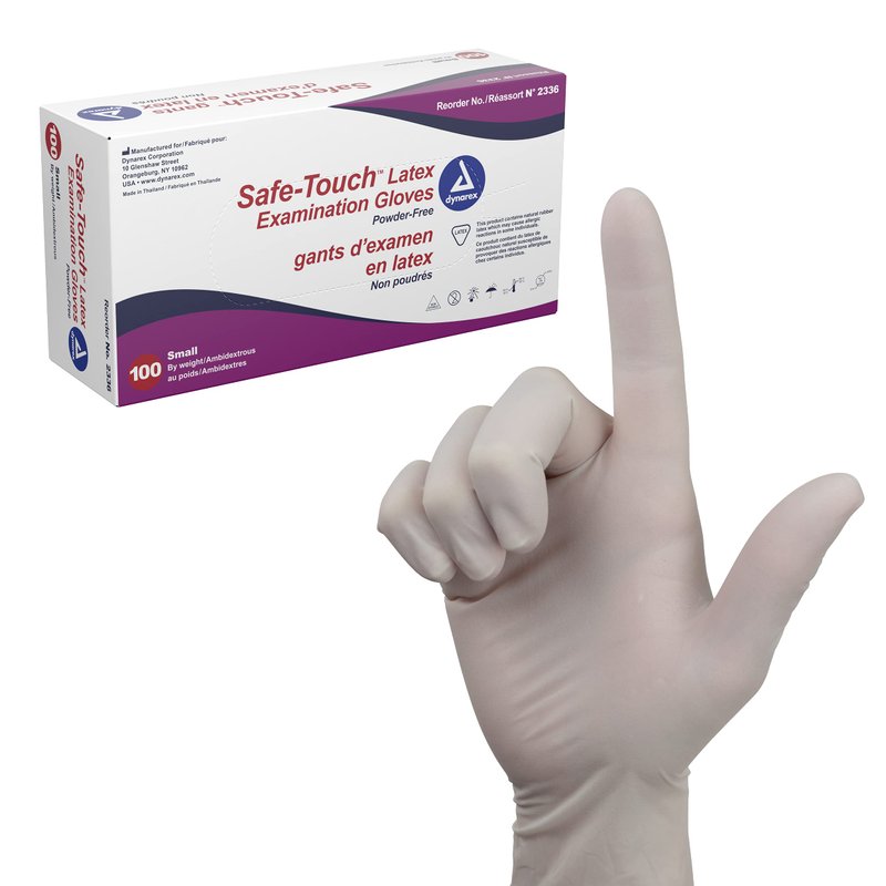 Dynarex Safe-Touch Latex Gloves, Powder-Free, Small, Box/Bisque 100 Count