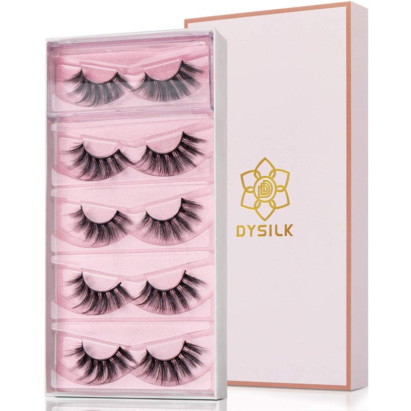 DYSILK False Eyelashes Mink - Strip Lashes 5 Pairs 6D Faux Eyelash Wispy Lashes Cat Eye Fake Eyelashes Natural Look Fluffy Lash Reusable Lash Extension Kit | 004-16.7mm