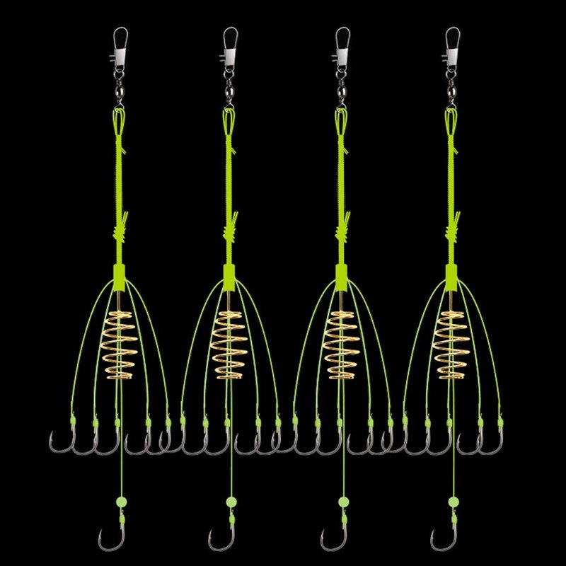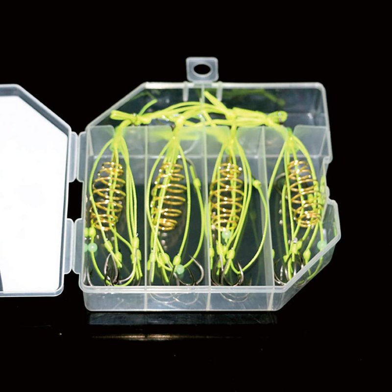 Dyxssm Fishing Feeder Carp Fishing Hooks with Fishing Spring Carp Feeder (Pack of 4) (Green, 10#)