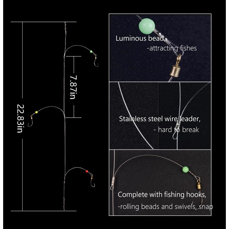 - 【Perfect design】: Complete with fishing hooks, swivels, snap, rolling beads and fishing rigs wire leader line.