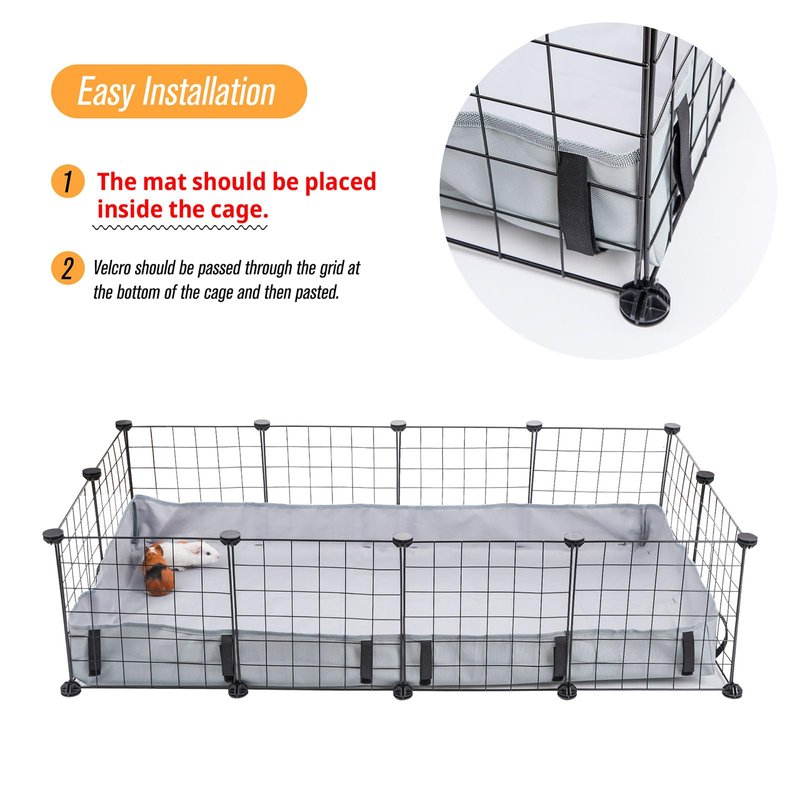 - Durable material: The guinea pig cage liner is made of PVC waterproof fabric, which is thicker and more wear-resistant than other cage liners. This guinea pig bedding is equipped with multiple Velcro stickers to easily connect the bottom of the mat to the guinea pig cage in multiple positions, ensuring safety and enhancing durability.