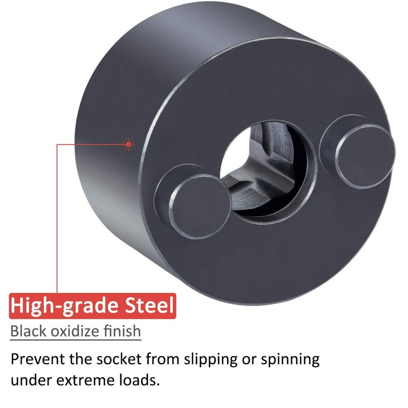 - BUILT TO LAST -- This socket is manufactured from high standard steel with black oxidize finish for extended durability, also preventing the socket from slipping or spinning under extreme loads.