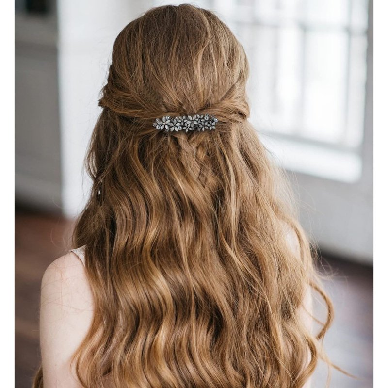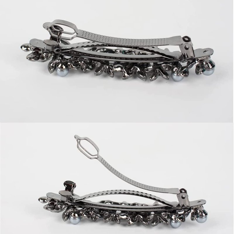 E EMZHOLE Hair Barrettes for Women, Light Grey Flower Design Rhinestone and Imitation Pearls Elegant Retro Hair Clip for Womens Hair Accessoires