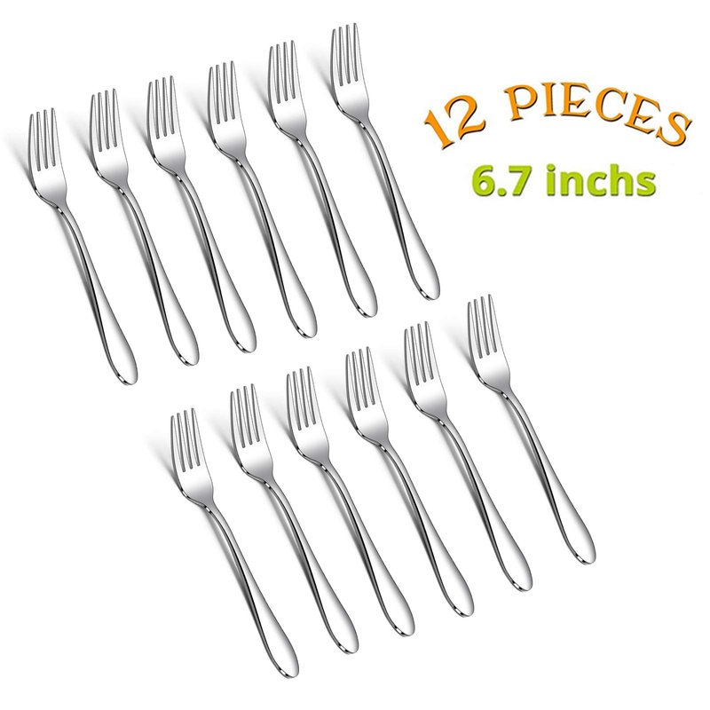 E-far 12-Piece Salad Forks, 6.7 Inches Stainless Steel Fork Set for Home Kitchen Restaurant, Mirror Finish, Dishwasher Safe