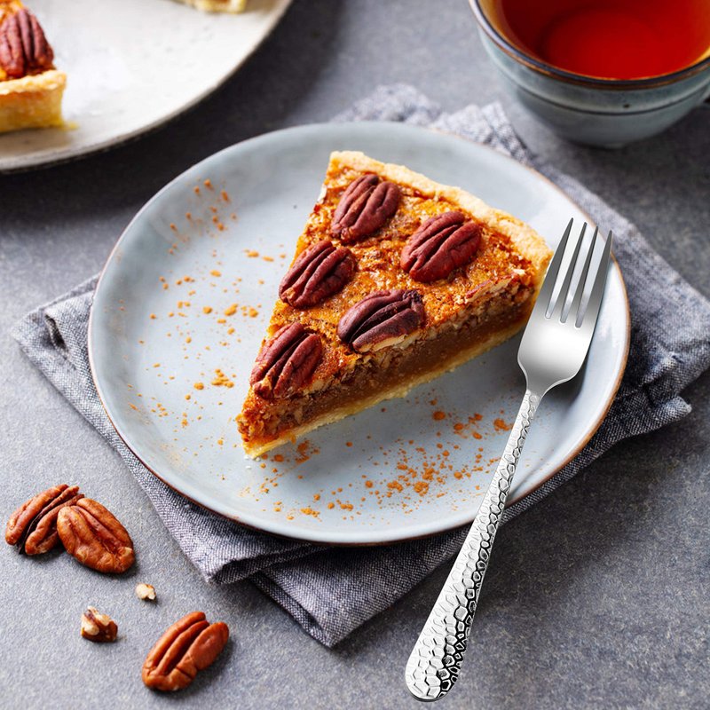 E-far 12 Pieces stainless steel hammered dinner forks give an air of elegance to your table settings. Using a classic design can well match your kitchen style and dinnerware, these forks are perfect for daily use, family gathering, restaurant, hotel, wedding, party, camping, travel and other occasions.