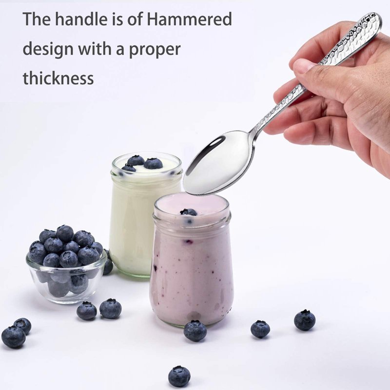 - * CLASSIC DESIGN - Stainless steel small spoons with hammered design, Plain and classic design yet with modern look, Perfect length to fit existing dinnerware and kitchen style
