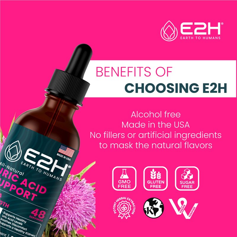 E2H Uric Acid Support Supplement - Tart Cherry and Devil’s Claw - Supports Uric Acid Health and Kidney Function Non-GMO - Vegan - (2 Bottles)
