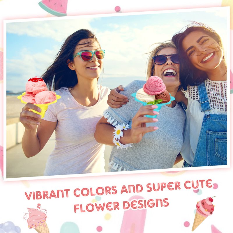 Eaasty 60 Pieces 4 oz Colorful Shaved Ice Cups Flower Shaped Snow Cone Cups Small Leak Proof Plastic Slush Snack Ice Cream Bowls for Hawaiian Holiday Party Summer Cookout Kids Birthday