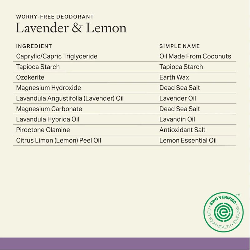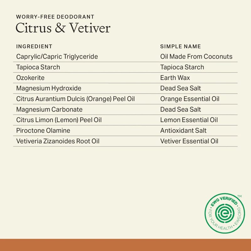 - SIMPLE INGREDIENTS THAT WORK: Each & Every is made with simple, safe ingredients that work to fight odor all day long, without aluminum. Each ingredient is hand-picked based on its EWG safety score.