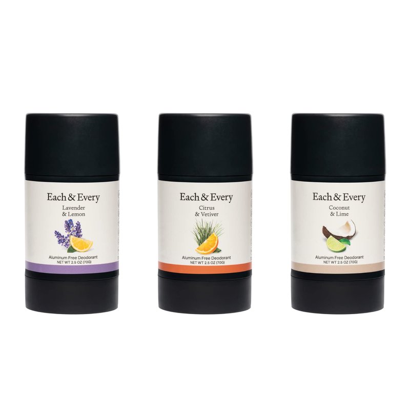 Each & Every 3-Pack Natural Aluminum-Free Deodorant for Sensitive Skin with Essential Oils, Plant-Based Packaging (Best Sellers, 2.5 Ounce (Pack of 3))