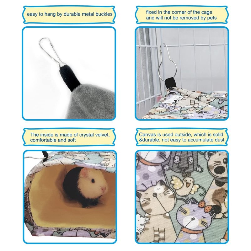 - 【Convenient installation】This guinea pig hideout is convenient to fixed in the corner of the pet cage, or hang it in a cage with firm hooks, which is not easy to be dragged by pets.