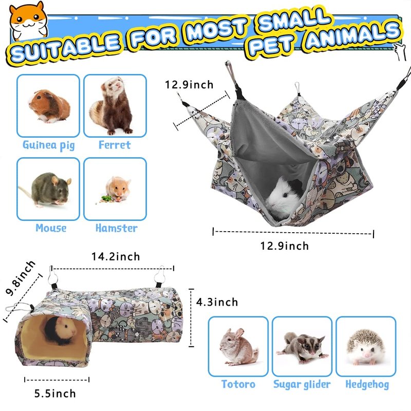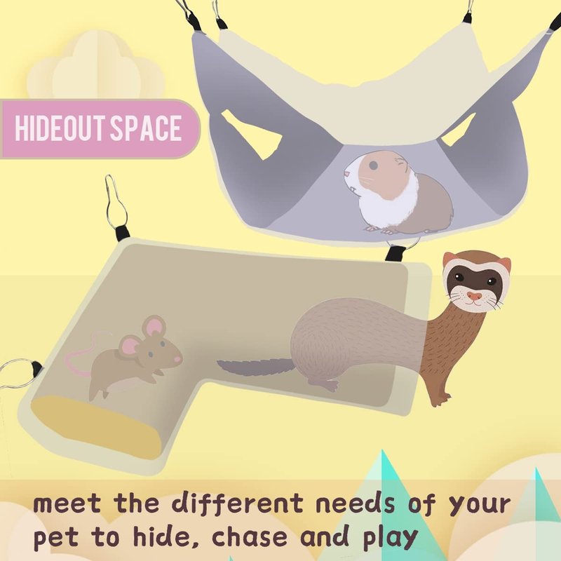 - 【Perfect pet cage accessories】The rat tunnel is right angle design, the ferret hammock is hanging design, is convenient to place in the corner of the pet cage, or hang it in the cage to saves space, so your pets can run around more freely in the cage. It's a great place for your lovely pets to hide, sleep, explore and play.