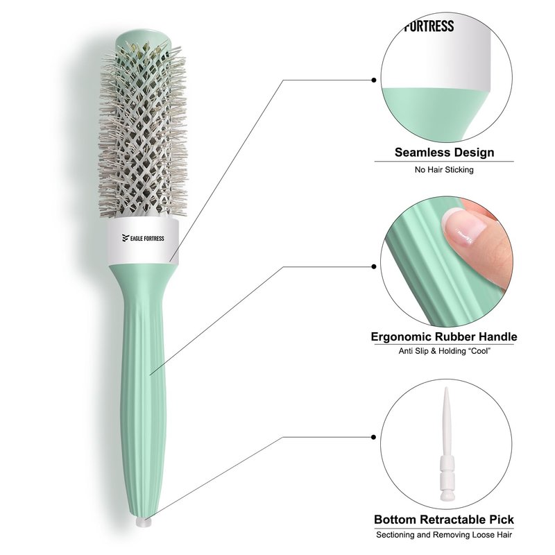 - Bottom Retractable Pick for Sectioning and Removing Loose Hair: Our round brush features a convenient retractable pick at the bottom, perfect for sectioning hair during styling and effortlessly removing any loose hair caught in the bristles.
