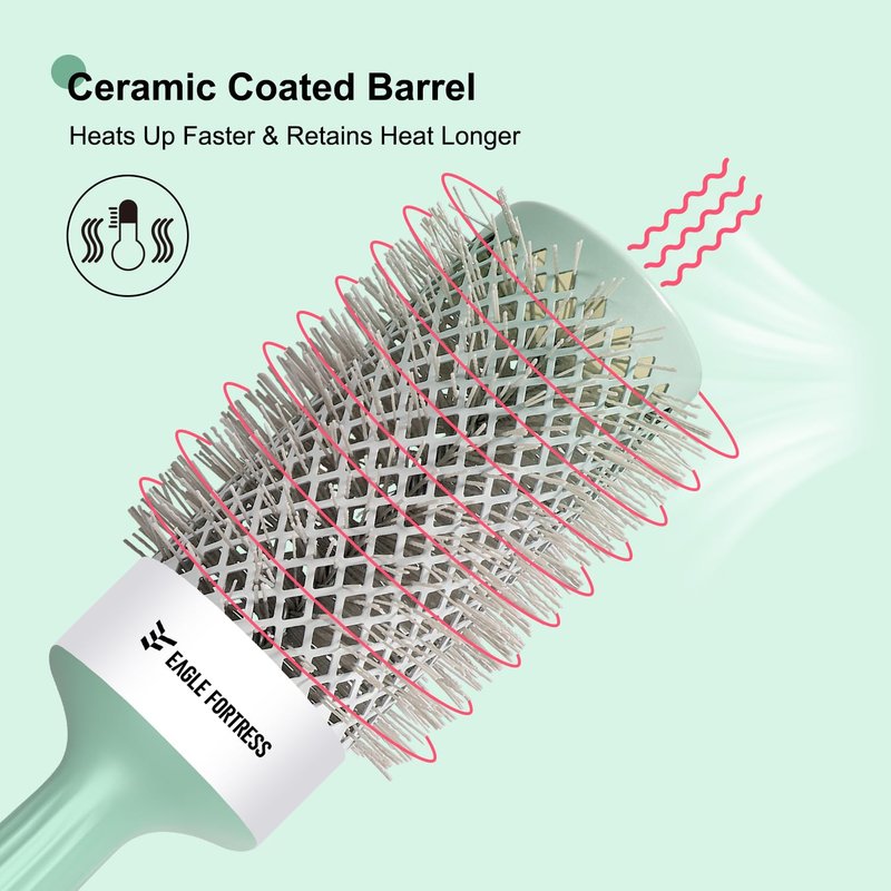 - Ceramic and Tourmaline Ion: Our round brush for blow out crafted with ceramic and tourmaline ion, the barrel rapidly heats up and maintains prolonged heat retention, resulting in faster styling and longer-lasting results.