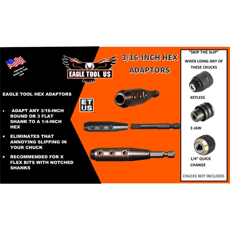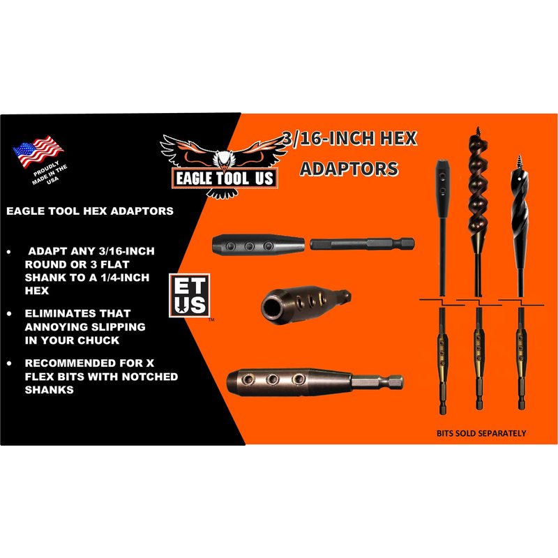 Eagle Tool US ETHXKIT187 Quick Switch Hex Adapter and Installer Drill Bit Extension Kit, 3/16-Inch, Made in The USA