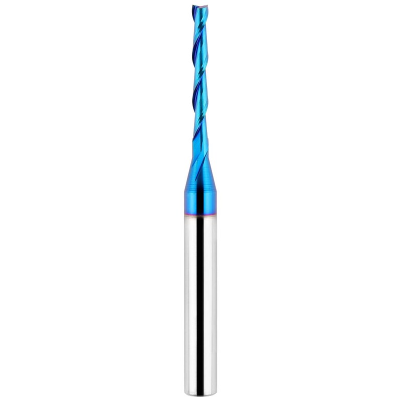 - SOLID CARBIDE AND NANO BLUE COATED: The up-cut spiral router bit is made of solid carbide. And Nano Blue Coating with high hardness and heat resistance enables the tool's cutting edge to retain crucial sharpness and lubricity. This provides longevity and produces cutting results of the highest quality. Clean surface, neat, no glitches.