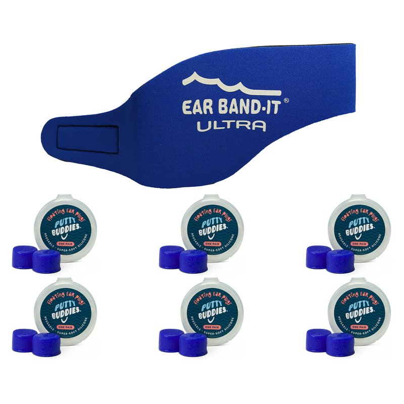 EAR BAND-IT Ultra Swimming Headband with Putty Buddies earplugs - 6 Pair Soft Silicone Premium Ear Plugs - The Best Swim Headband and Earplugs - Doctor Recommended
