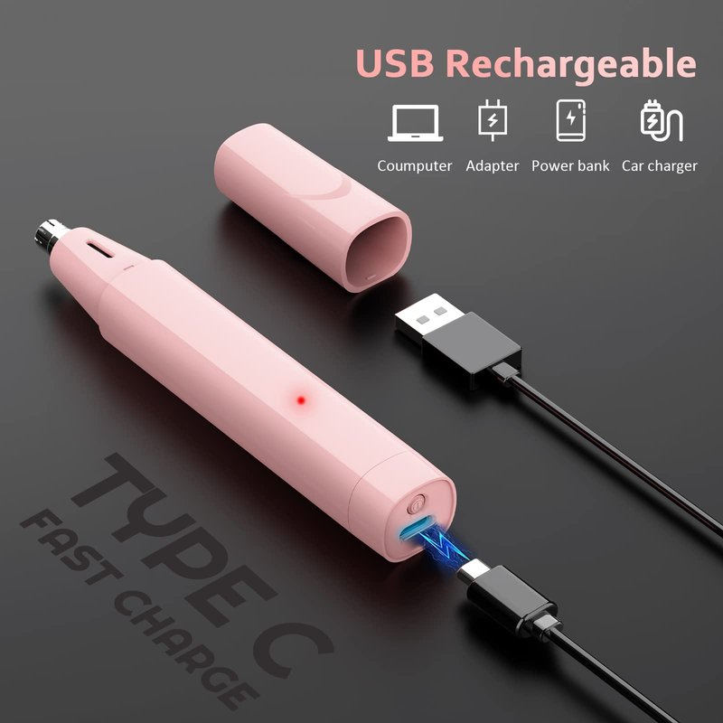 - 【USB Rechargeable】No hassle of changing batteries. This womens nose hair trimmer comes with a rechargeable USB cable and built-in battery, suitable for multiple devices such as power banks, computers, laptops, sockets and more. After fully charged, it supports 60 minutes of cordless trimming.