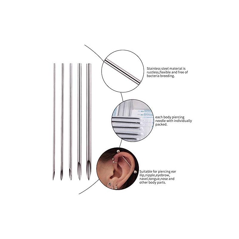 - ✅Product Advantages:each body piercing needle with individually packed new and unused and EO gas sterilized for your protection and convenience.