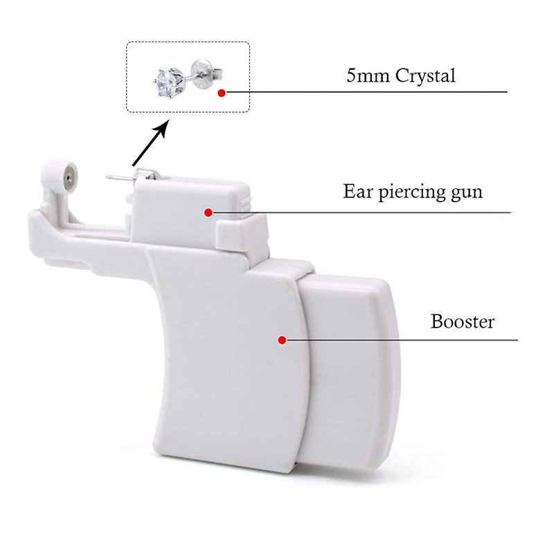 - ✅ High quality: Professional ear piercing kit, made of ABS, 100% new high quality. The package contains 1 pcs booster and 2 pcs ear piercing kit and 2 pcs cleaning pad.