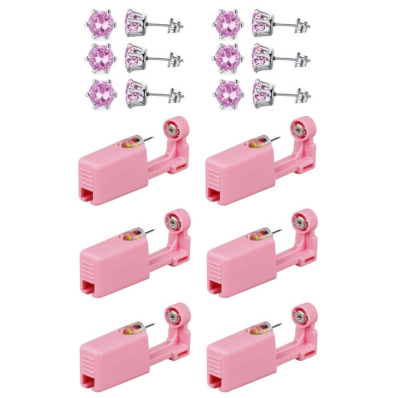 Ear Piercing Kits,Body Piercing Kits,6 Pack Disposable Self Ear Piercing Gun Tool with 5mm Cubic Zirconia Stud Earrings (Pink)