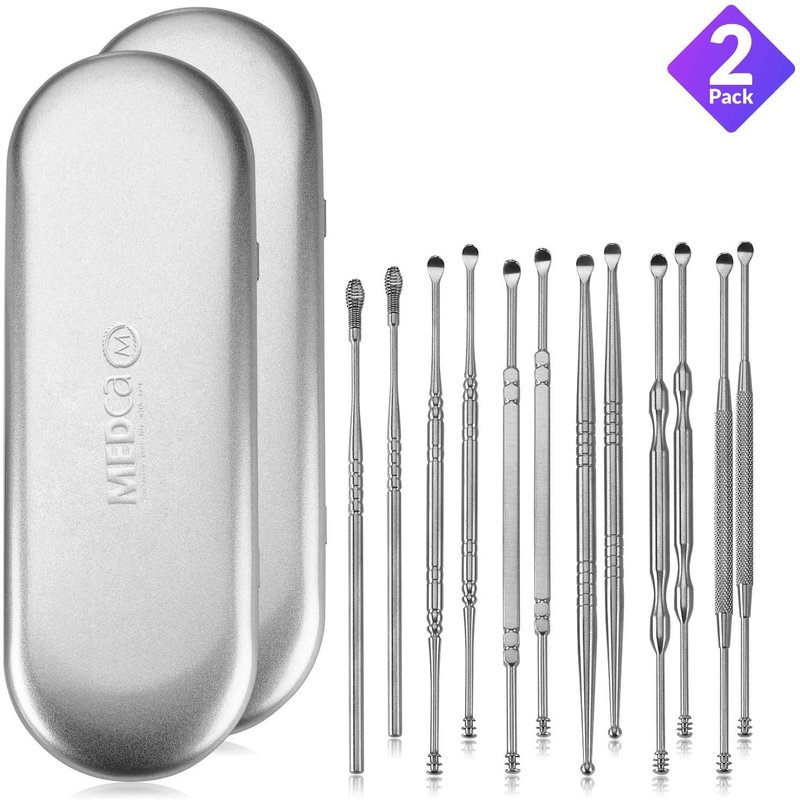 The Pack of 2 - MEDca 6 Piece Deluxe Ear Wax Removal Kits is equipped to meet all of your ear cleaning needs. This ear curette earwax removal kit and spiral ear cleaner is made from 100% surgical stainless steel and will last a lifetime! Never waste money on Cotton Swabs and other unsustainable products again!
