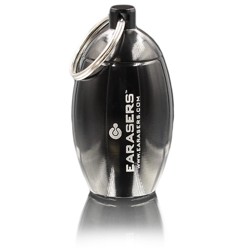 EARasers Earplugs Keychain Carrying Case - Aluminum Waterproof Ear Plugs and Pills Holder (Black)