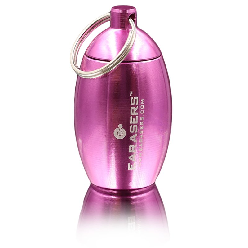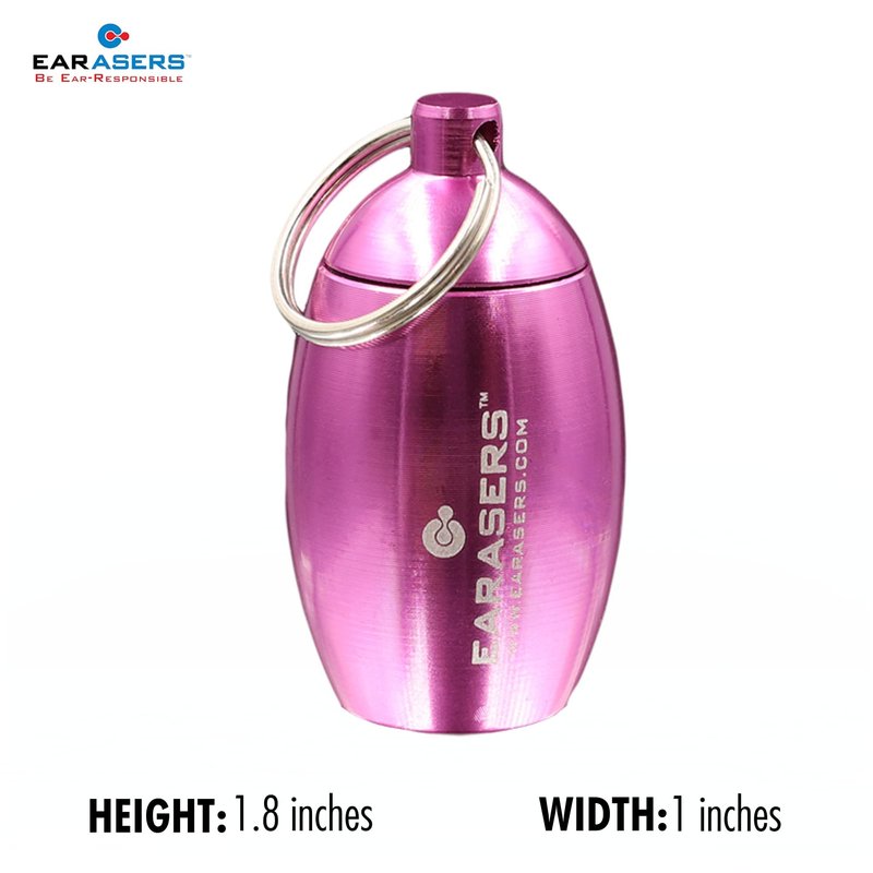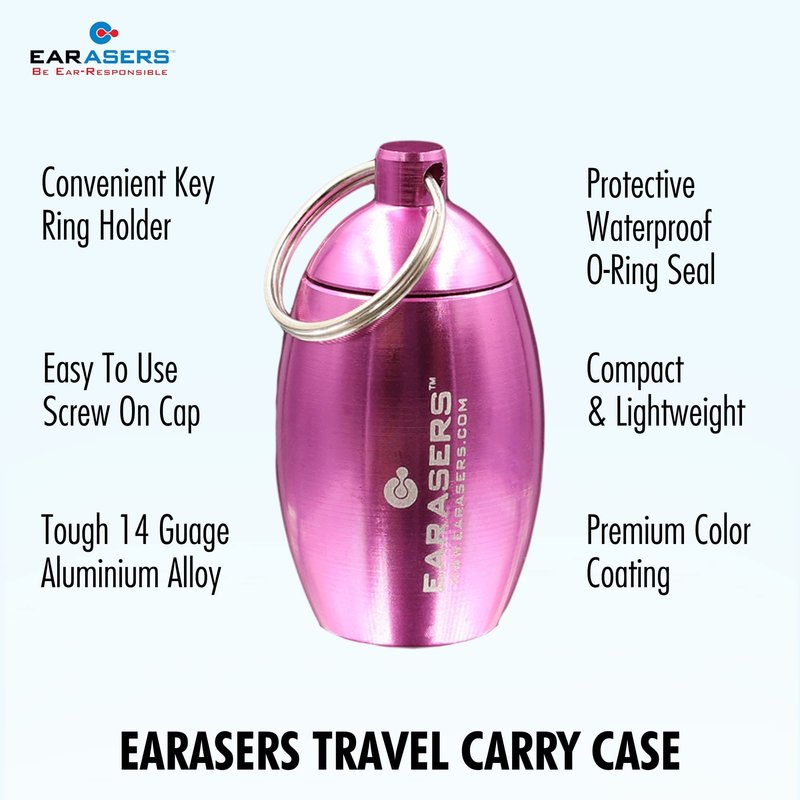 EARasers Earplugs Keychain Carrying Case - Aluminum Waterproof Ear Plugs and Pills Holder (Pink)