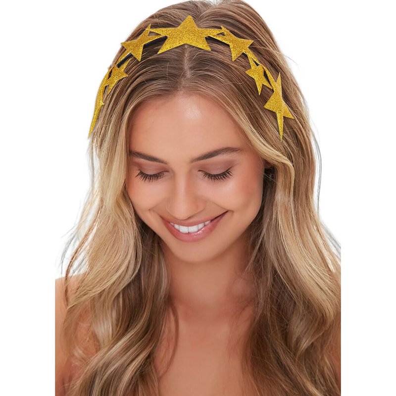 Let your personality shine through with the glitter star headband, whether you prefer the elegance of silver or the eye-catching allure of gold, you can select the color to suit your style.