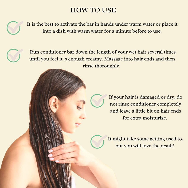 - Solid conditioner bar for all hair types. Tangerine and Vanilla essential oils are used to scent this sweet-smelling conditioner bar.