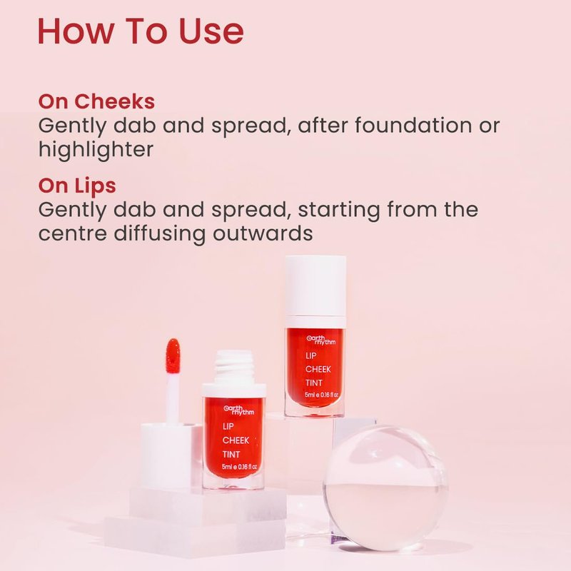 Earth Rhythm Lip & Cheek Tint Cherry, Hydrates Dry & Chapped Lips, Women & Girls - 5ml