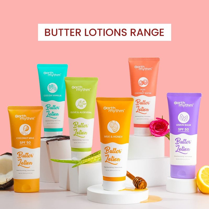 Earth Rhythm Rose & Coconut Water Butter Lotion | Soothing, Deeply Nourishing & Intensely Moisturising | for All Skin Type | Men & Women