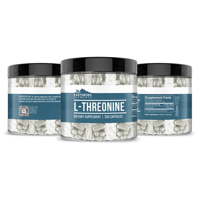 Earthborn Elements L-Threonine 200 Capsules, Essential Amino Acid, Pure & Undiluted, No Additives