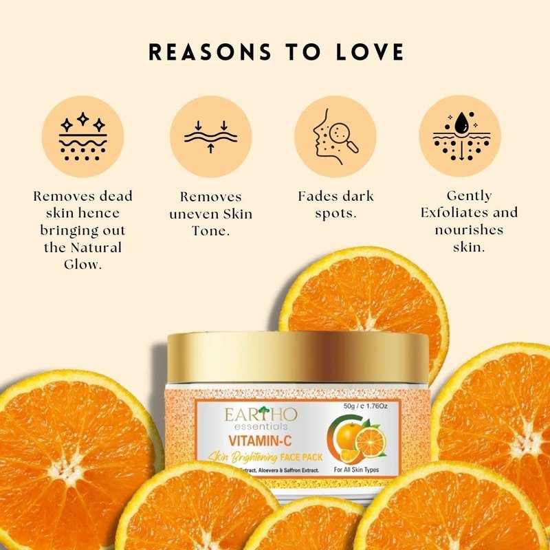 Eartho Essentials Ayurvedic Vitamin C Skin Brightening Face Pack with Apple Extract, Aloevera & Saffron Extract 50g