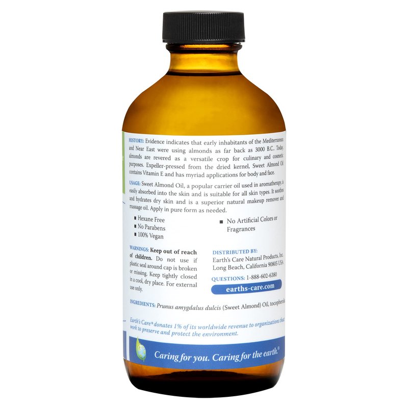 Earth’s Care Sweet Almond Oil - Expeller Pressed Almond Oil for Skin and Hair, Glass Bottle, 8 FL. OZ.